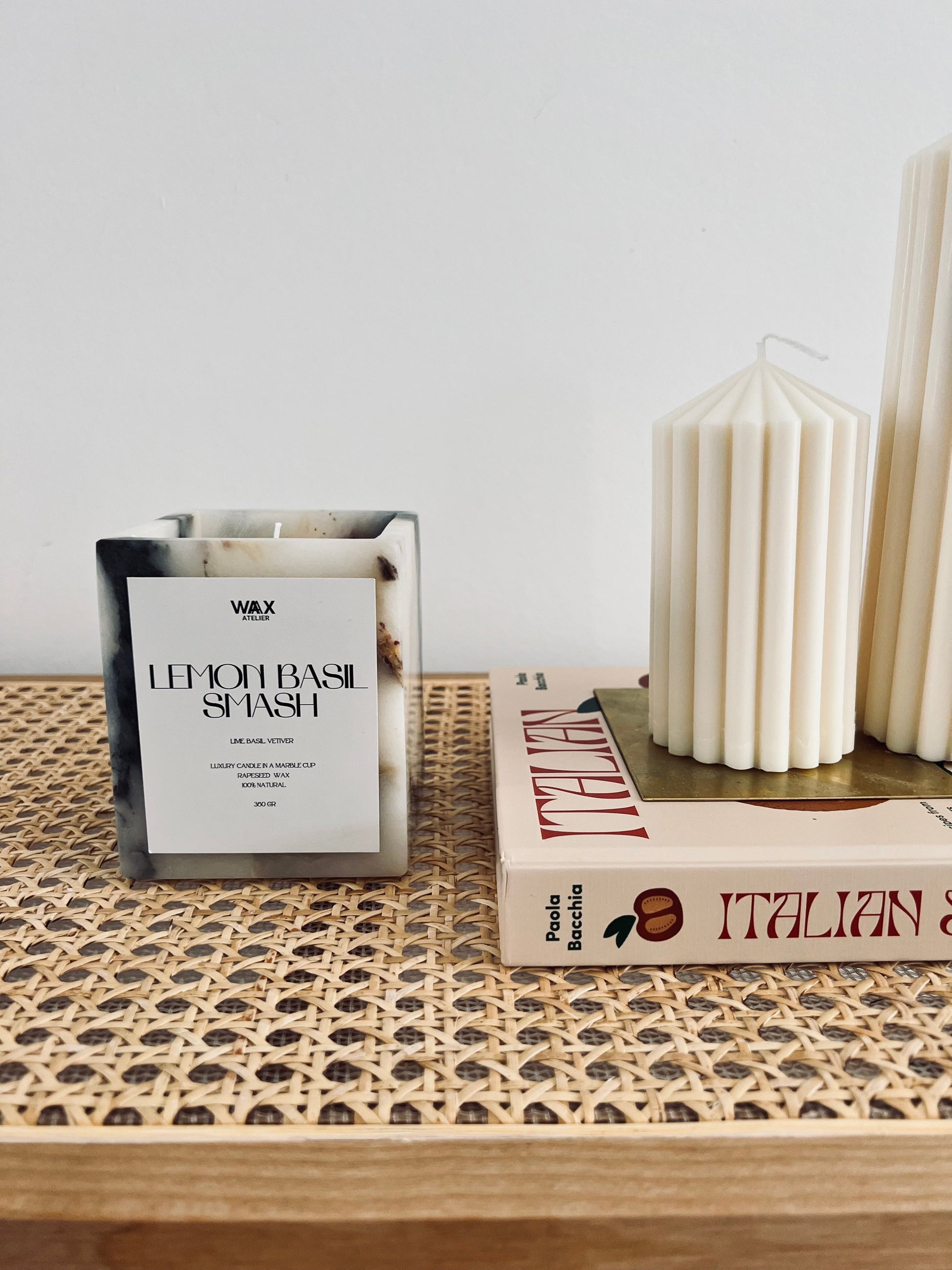 - Das Marmorgefäß enthält ca. 350 gr. Sojawachs